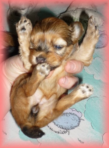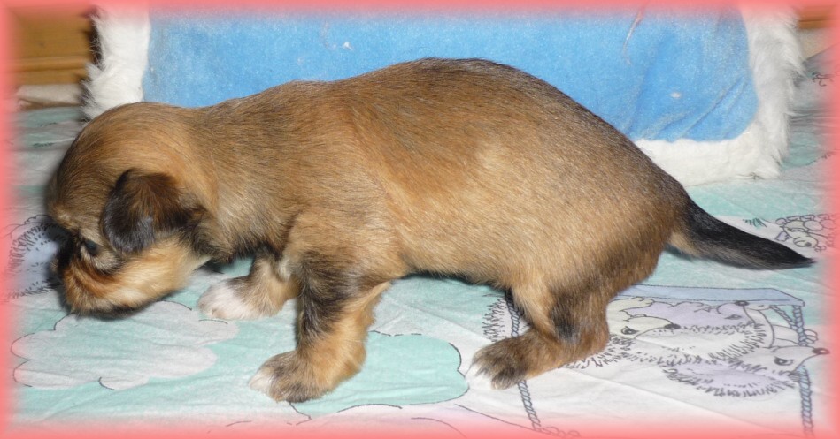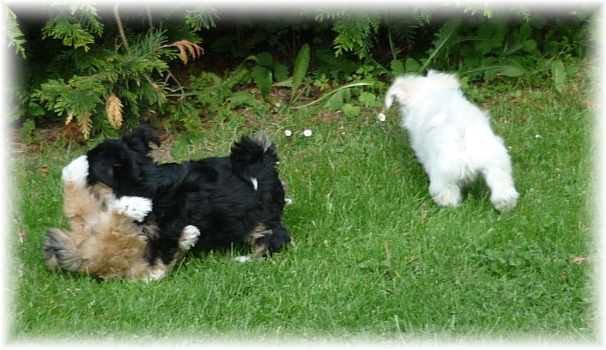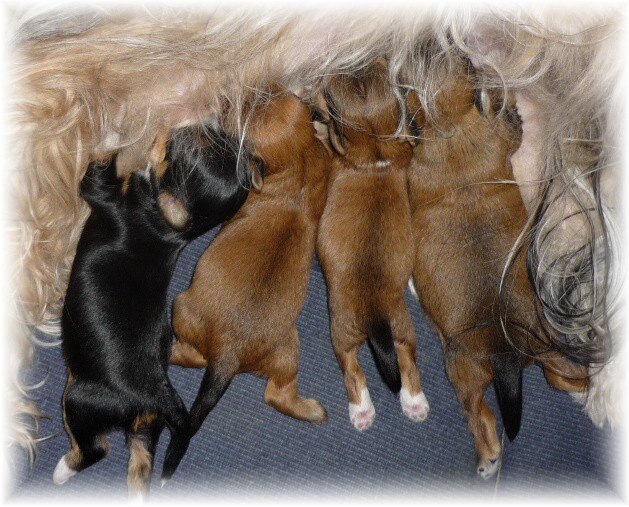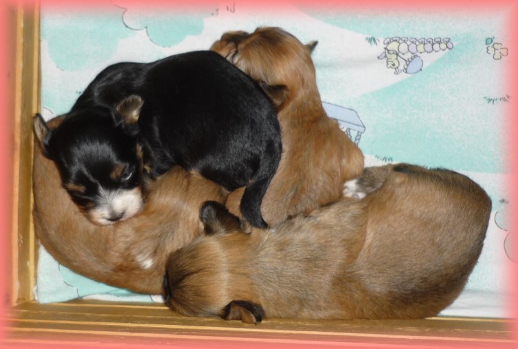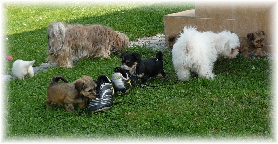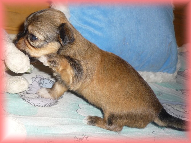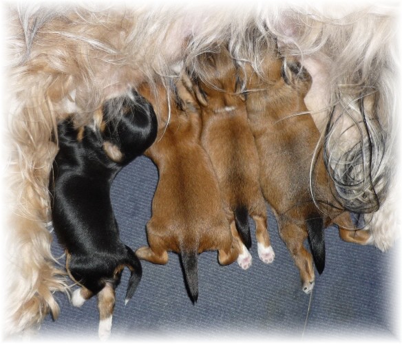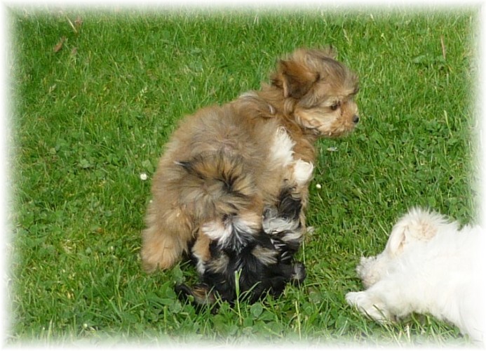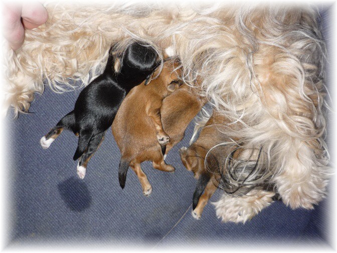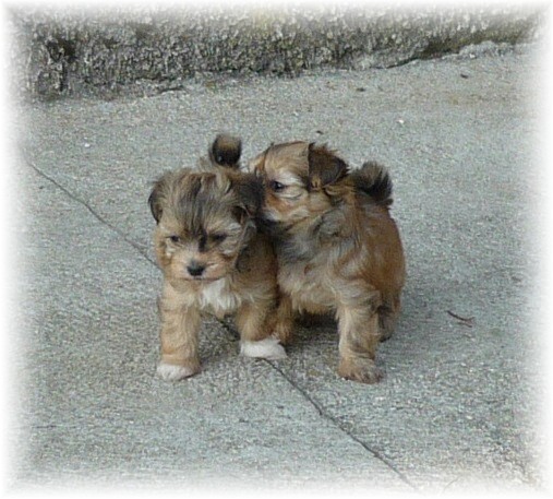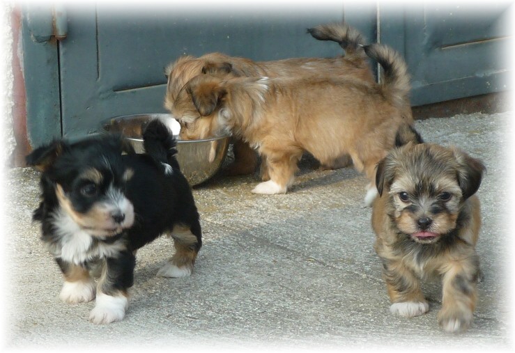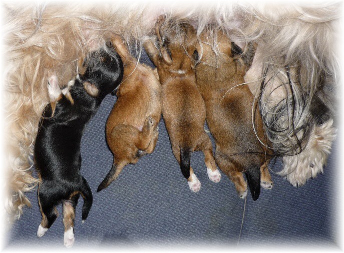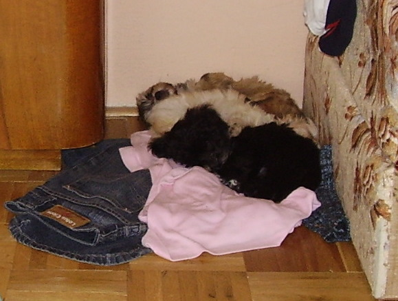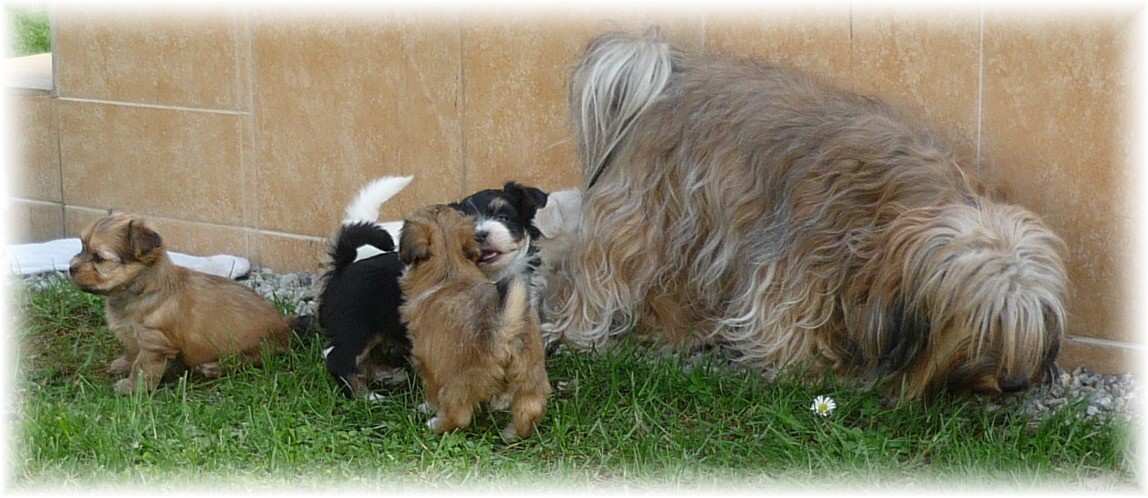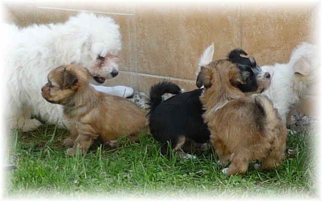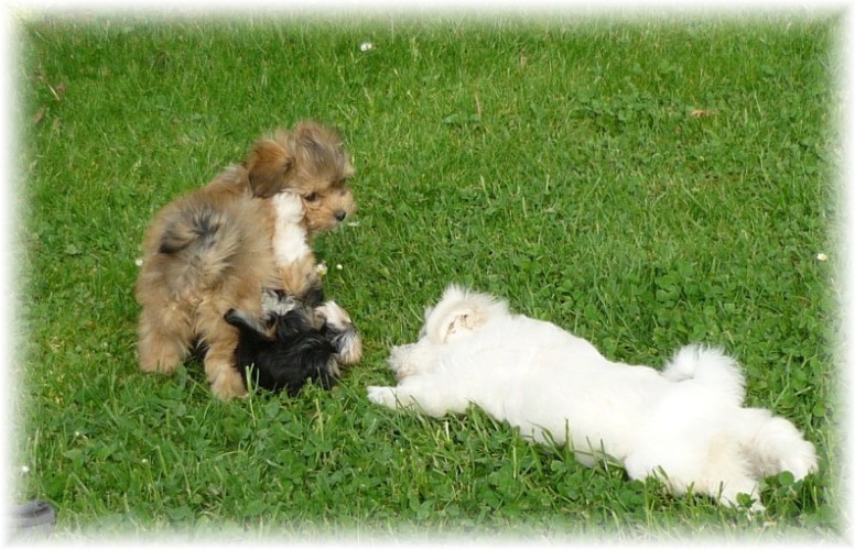 - narozeny: 3 fenky a 1 pejsek - fenky: sobolí, zlatá, sobolí s bílou - pejsek: černý se znaky - jména a tetovací č.: - pes: Iziásch havana - t.č. 1666 - feny: Iasmina havana - t.č. 1667, Ilonka havana - t.č. 1668, Ivette havana - t.č. 1669 |