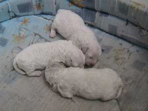 Počet štěňat: 3 fenky Jména a tetování: Belinda White - 3535, Bessie White - 3536, Britny White - 3537