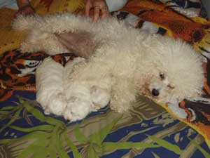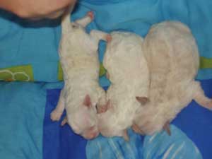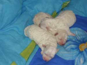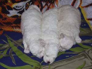 Počet štěňat: 3 psi jména a tetování Camelot White - 3538, Casanova White - 3539, Curl Bear White - 3540 ------------------------------------------------------------ Camelot White Angel NAVAJO - výborný - bonitace: