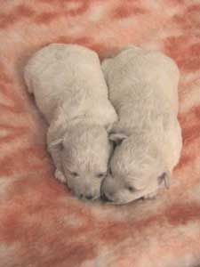 Počet štěňat: 4 - 2 psi, 2 feny Jména a tetování: Diamont White - 3541, Dream White - 3542, Daphne White - 3543, Dottie White - 3544 |