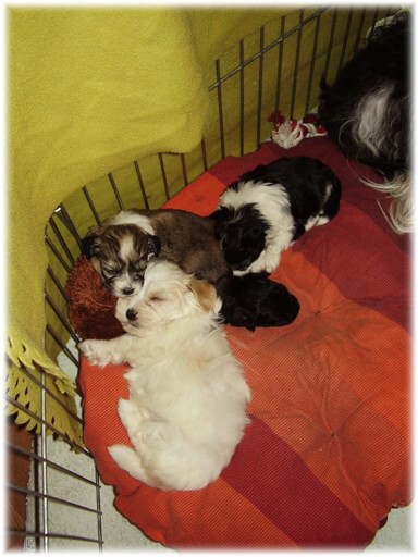 Datum narození: 1.11.2007 Počet štěňat: 2 Pohlaví: 2 fenky ( 1 fenečka uhynula ) jméno a tetovací číslo DEBIE havana - t.č. 1410 (Export Švýcarsko) odběr od 25.12.2007