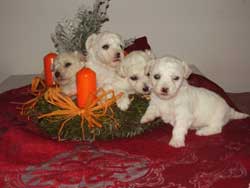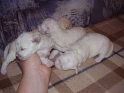 Počet štěňat: 4 fenky Jména štěňat: Gabi White - 3844, Gaimee White - 3845, Gina White - 3846, Gipsy White - 3847 |