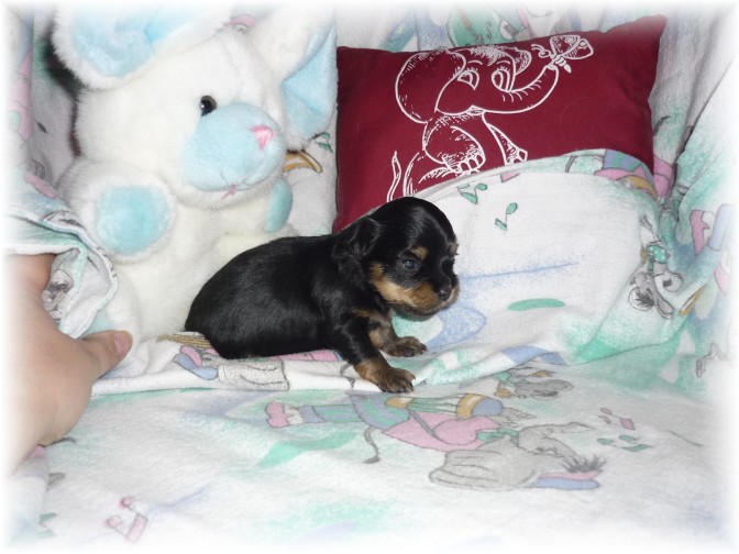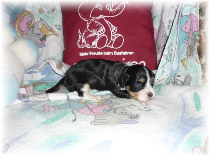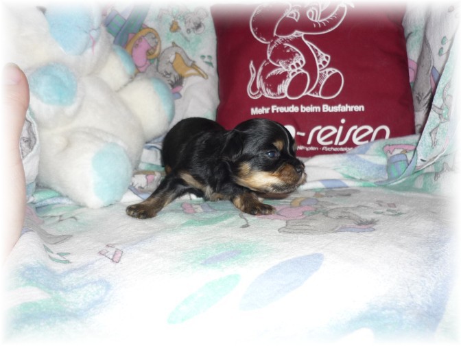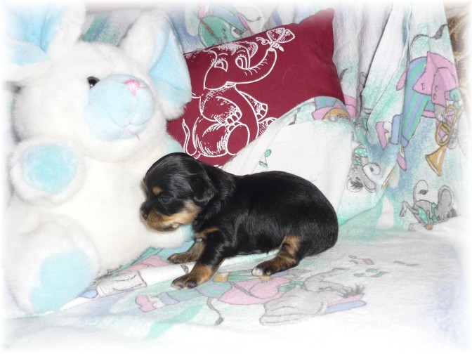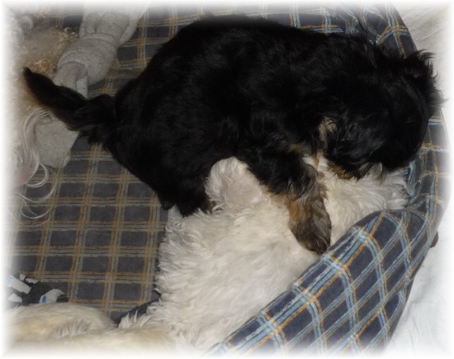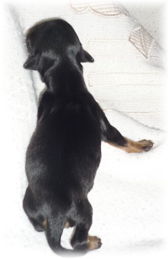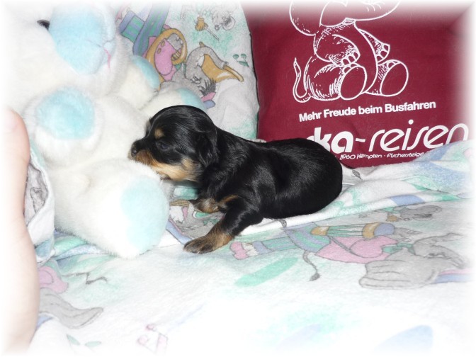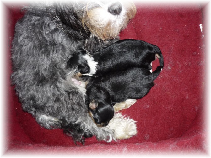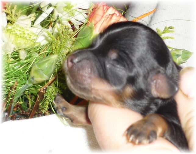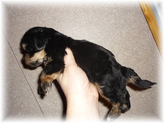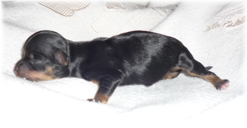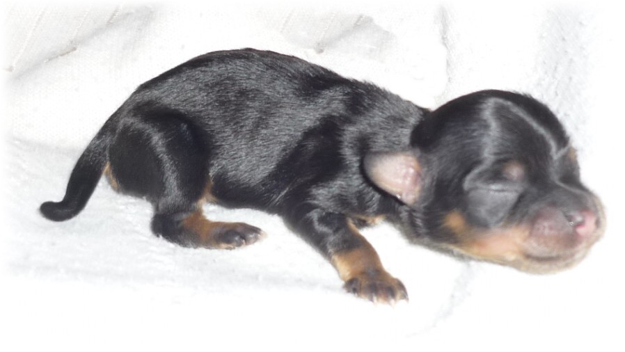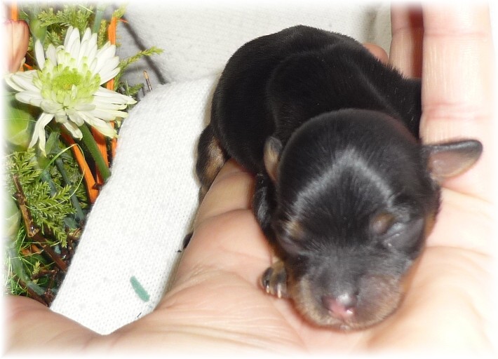Pohlaví: 1 pejsek (černý se zn.) a 1 fenka (černá se zn.) Jména a tetovací čísla: - pejsek: HERRIOT BOY -t.č. 1580 - fenka: HANNAH GIRL - t.č. 1581