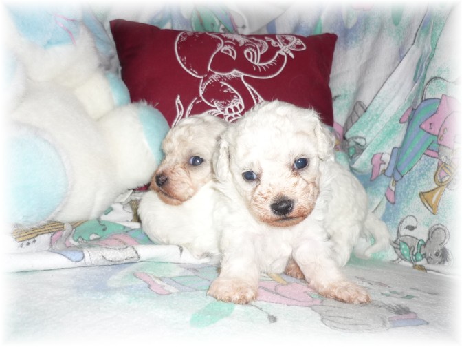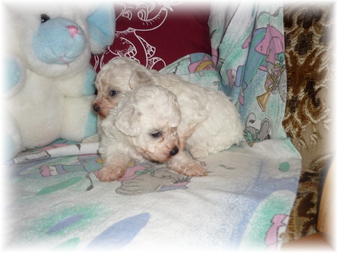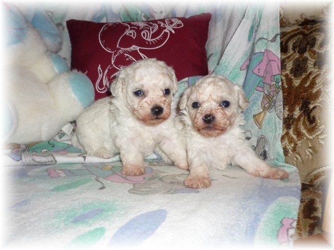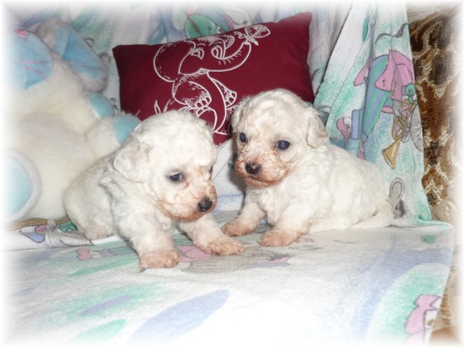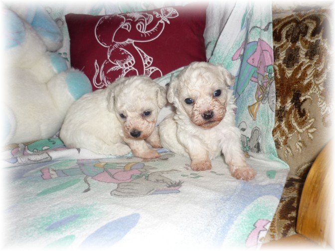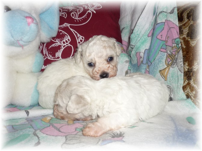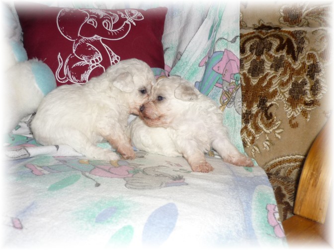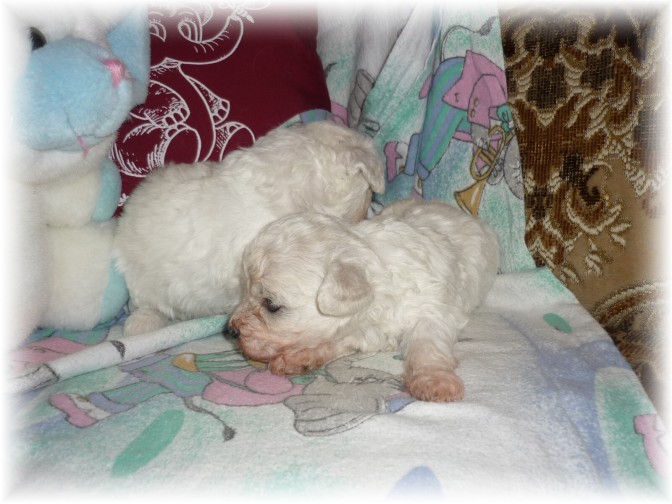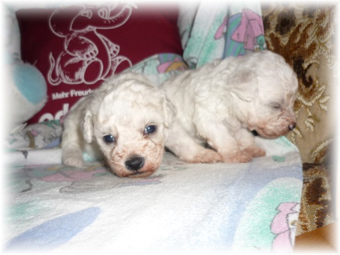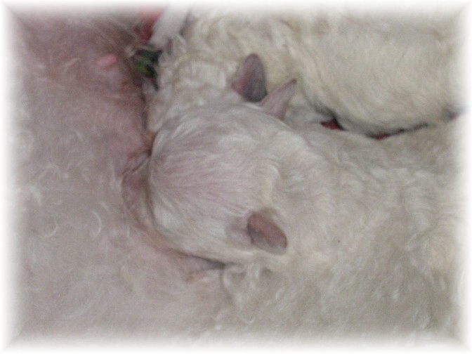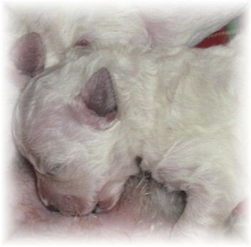 !! umluvte prosím u fenek růžové zbarvení srsti na tlamičce a předních nožičkách, je to zbarvené od slin jak sají od matky, a jak je matka neustále až moc pečlivě olizuje - časem to odroste !!