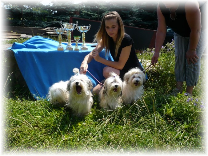 Jako i několik let zpět i letos se na začátku léta konala tradiční Klubová výstava KCHHP v Nižboru u Berouna. Jako tradičně i letos byla výstava velice dobře připravena a probíhala bez sebemenších problémů. Celkem se výstavy účastnilo 20 havanských psíků z několika chovatelských stanic. I my, já a moje sestra v doprovodu s mým manželem jsme také vyrazili na tuto velice pohodovou akci. Výstava začínala až od 11,15 hod. A posuzování se ujala paní rozhodčí Mgr. Božena Ovesná. Na výstavě jsme se setkali s odchovy z vrhu "E" a to s fenkou Elibigail havana Angel NAVAJO (-maj. pí Knauerová) a pejskem Eminnent havana Angel NAVAJO (- maj. ing. Valášková). Bylo to moc hezké setkání, oba dorostenci rostou do krásy, jsou moc šikovní a velice přátelští, děkujeme jejich hodným a milujícím páníčkům, že se rozhodli zkusit nějakou tu výstavu se svými miláčky.